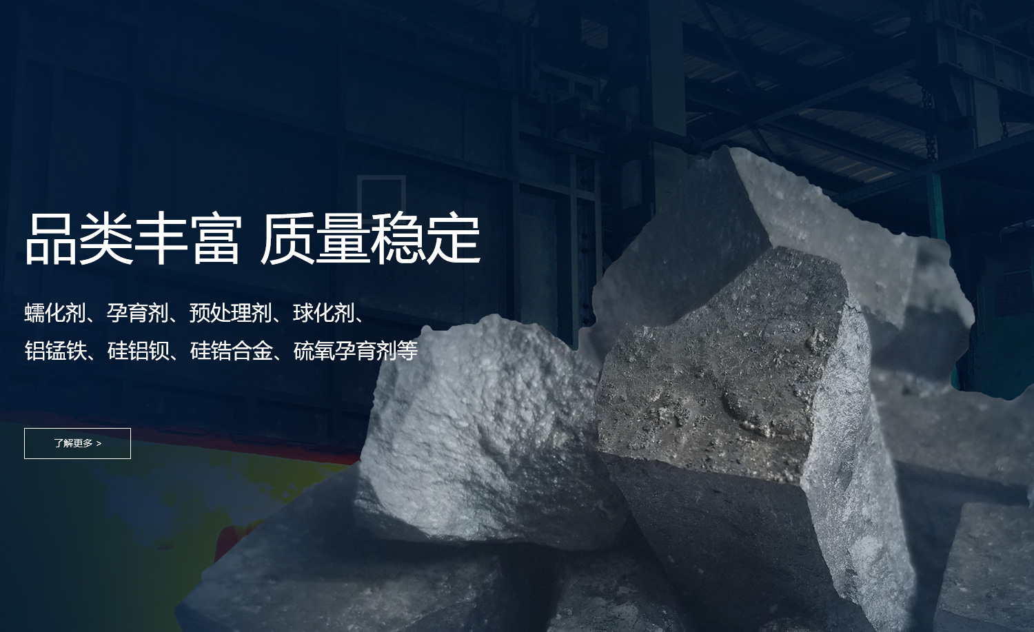 公司品種類多樣化,主要產品:蠕化劑、孕育劑、預處理劑、球化劑、鋁錳鐵、硅鋁鋇、硅鋯合金、硫氧孕育劑等,多年來深受國內外廣大用戶的信賴。具有嚴格的質量管理體系,已通過GB/T19001-2016/ISO9001:2015質量認證體系標準要求。